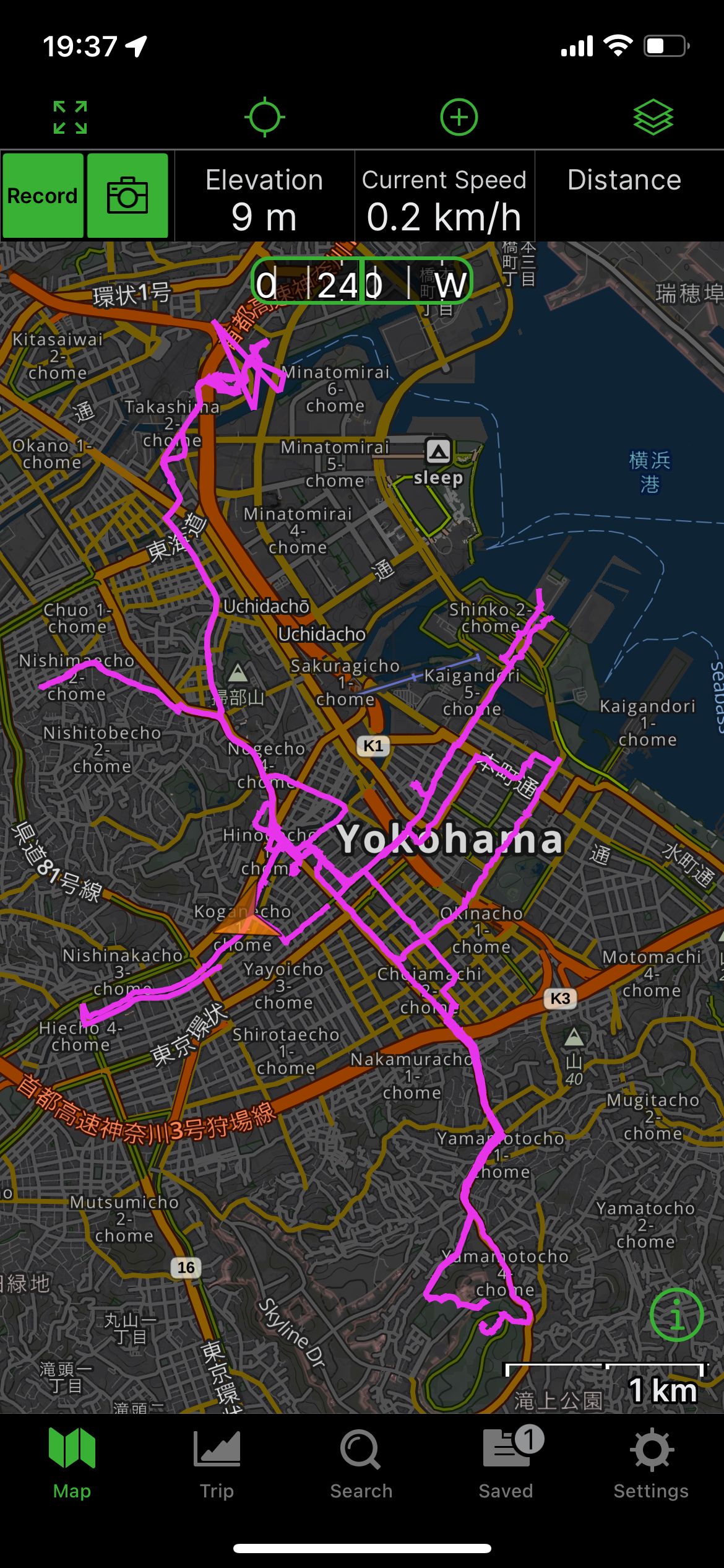 The above screen shot shows a few of the walks I did my first week here. I didn't always remember to hit record, also using Google maps to find food while simultaneously running GaiaGPS to record walks meant a quickly depleted phone battery, so yeah, I actually walked quite a bit more. I've been averaging between 12,000 and 15,000 steps a day since being here.